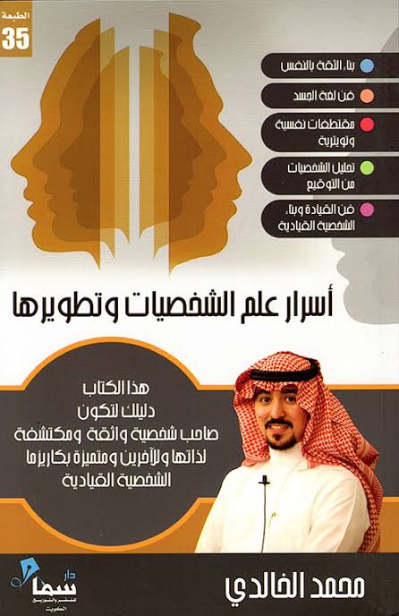 كتاب أسرار علم الشخصيات وتطويرها تأليف د. محمد الخالدي، وهو من أفضل المؤلفات التي قدمها الكاتب محمد الخالدي، ويعتبر دليلًا هامًا لكي يصبح القارئ صاحب شخصية واثقة ومكتشفة لذاتها وللآخرين ومتميزة بكاريزما الشخصية القيادية، والمحور الأساسي للكتاب هو: بناء الثقة بالنفس، وتناول فن القيادة وبناء الشخصية القيادية، وفن لغة الجسد، وتحليل الشخصيات من التوقيع، كما يعرض لنا مقتطفات نفسية وتويترية.. ويعتبر الكتاب قريبًا لحياة القرّاء ﻷنه يعرض الكثير من المواقف الحياتية، والمواقف التي يمر بها أغلبنا.. نتمنى لكم قراءة ممتعة ومثمرة.