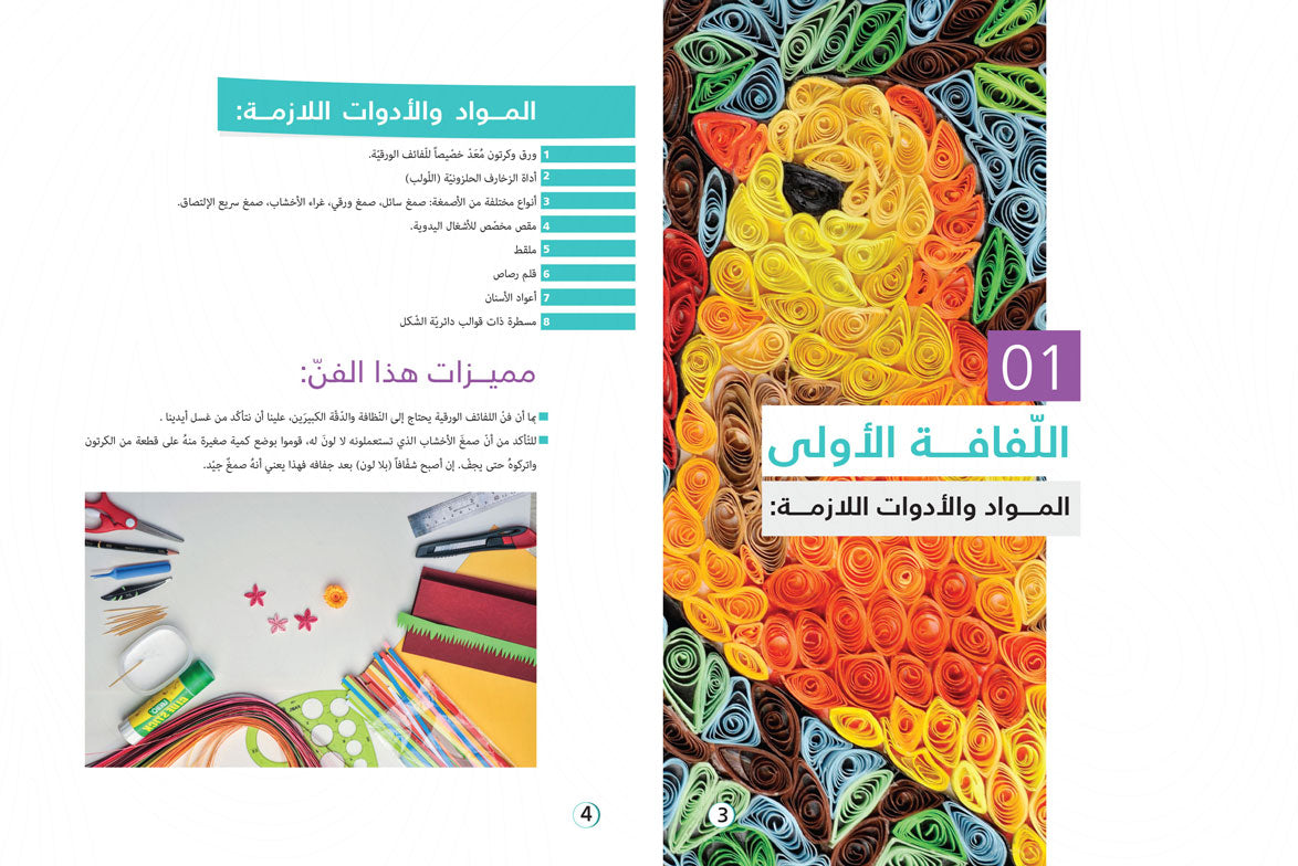 صفحات مشوقة في عالم فن اللفائف الورقية وأهدافه والمواد والأدوات اللازمة له، إضافة إلى عرض اكثر من 40 نموذج للأشكال الأساسية وأساليب التركيب.