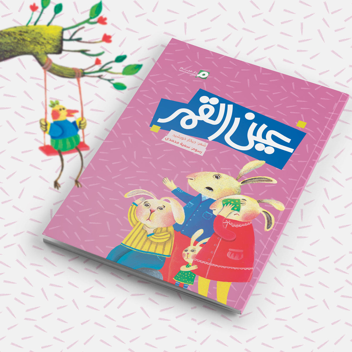 قصّة شعريّة تدور أحداثها مع شخصيّات يألفها الطفل ويحبها وهي الأرنب والفيل والقمر، ترى ما هي عين القمر؟ ولماذا اتجه إاليها الأصدقاء وما الذي حصل معهم؟ مغامرة شيّقة فيها العبر بالتعاون والقوّة والحكمة نتغلّب على الصعاب.