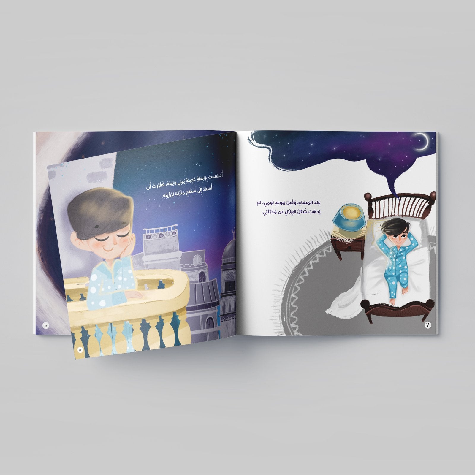 قصة تبدأ بالاستهلال، وتعرف الطفل على الرابط بين القمر وشهر رمضان، وتمر على كل المناسبات الدينية في هذا الشهر الكريم، وعلى خصوصية قراءة القرآن وزيارة المسجد فيه.