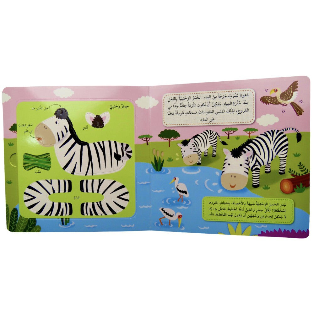 هذا الكِتابُ المُزَيَّنُ بِالصُّوَرِ ، والمليء بالحقائِقِ، يَحْتَوي على خَمْسَةِ نَمَاذِجَ مُبْهِجَةٍ ، يُمْكِنُكَ إِحْرَاجُ قِطْعِها وَإِعَادَةُ جَمْعِهَا بِسُهُولَةٍ .
