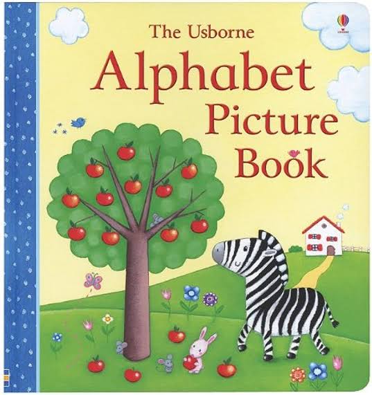Tabbed pages introduce a word beginning with each letter of the alphabet, from an apple and a butterfly to a xylophone, yellow paint, and a zebra. On board pages.