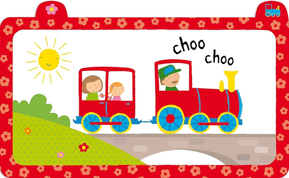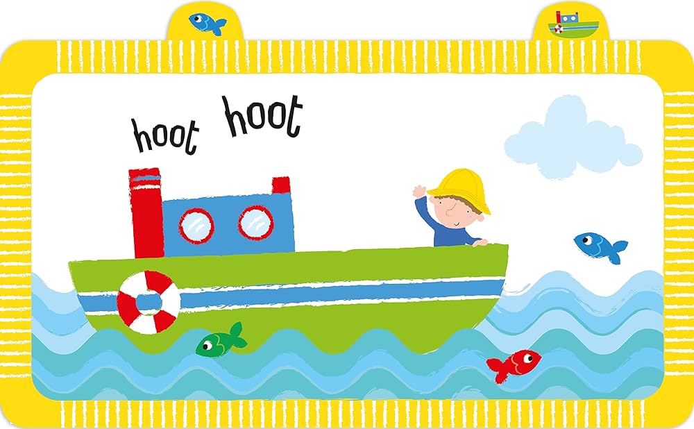 This is a bold, bright new book for young children containing beautifully designed high-contrast and a sound panel to bring the pictures to life. The words are onomatopoeic, providing easy prompts for parents to make sounds for their babies to hear, essential for their speech development along with the sound panel for added effect. Sounds include a train, a plane, a fire engine, a boat and a bus.