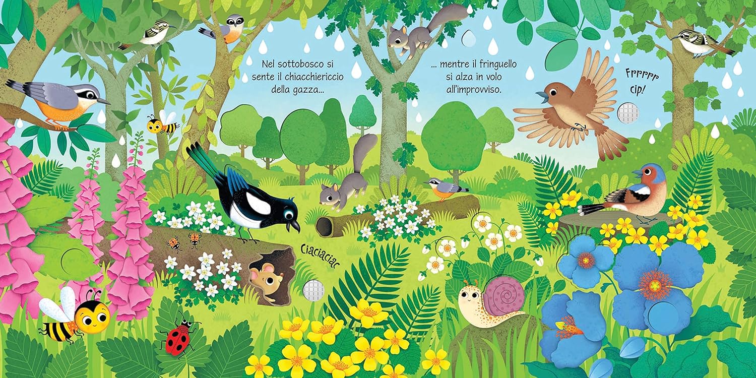 Les petits enfants adoreront entendre les oiseaux chanter en parcourant les pages de ce livre enchanteur. Chaque scène magnifiquement illustrée comporte du texte simple et des formes découpées à découvrir, ainsi qu'un bouton sonore sur lequel appuyer pour entendre différents sons d'oiseaux, notamment le tweet de bébés merles, le bavardage d'une pie, le cancan cancan et le chant d'un coucou.