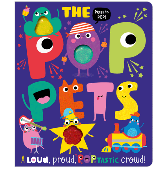 Meet The Pop Pets: this funny crew make a racket everywhere they go, whether they’re crunching food, beeping their cars or playing noisy instruments! Little ones can press the colourful, shaped poppers set into the tummies of each Pop Pet to hear the plastic make a noisy POP! With a fun rhyme and amusing illustrations, children will love joining in with this noisy book. RHYMING BOARD BOOK WITH NOISY POPPERS