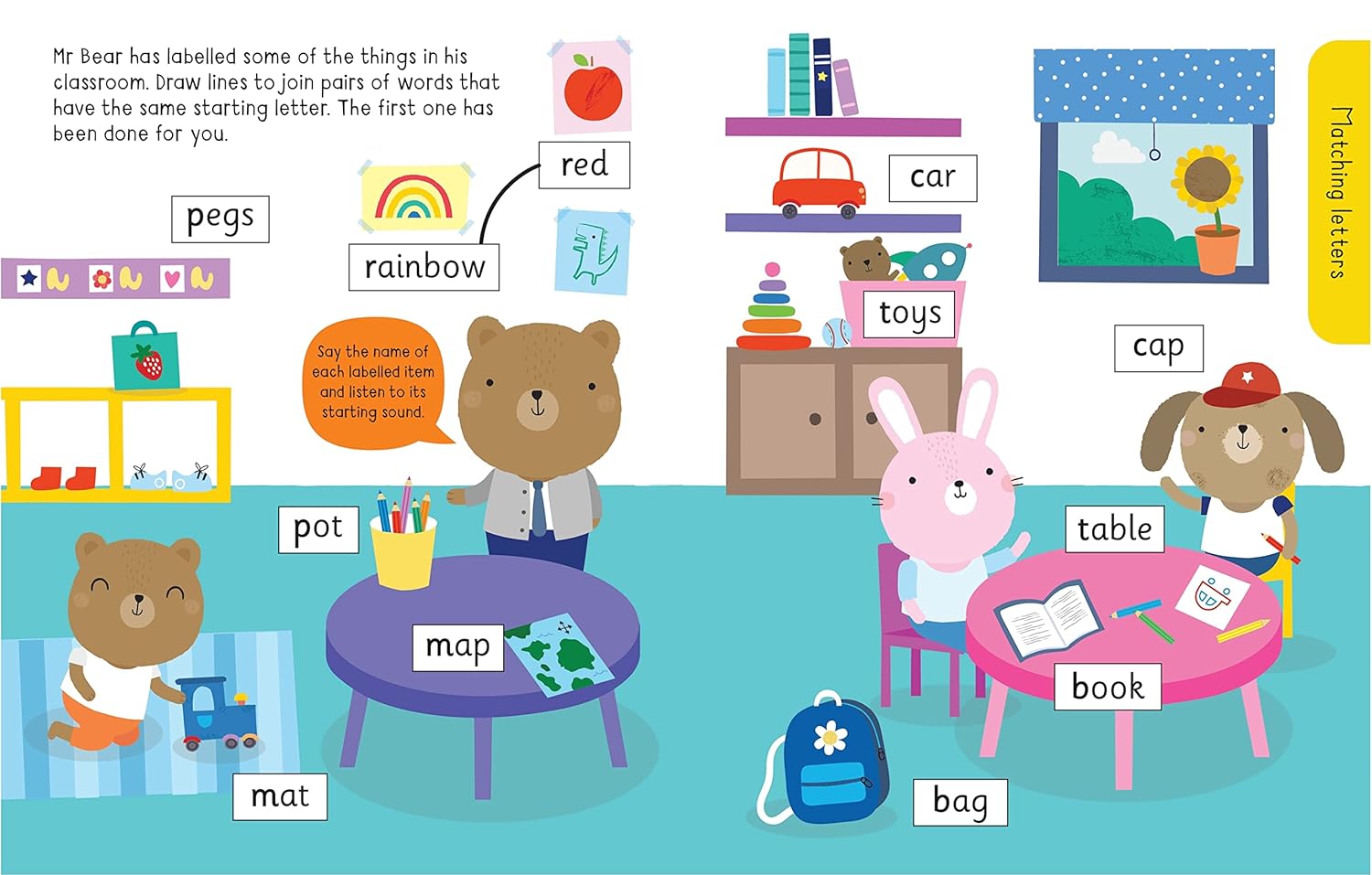 Perfect preparation for starting school, this fun book helps children develop pen control and practise essential pre-reading and reading skills taught in the Early Years Foundation Stage. The engaging activities and friendly animals help build confidence in letter, sound and word recognition. There are things to spot and draw on every page and pictures and letters to trace over with the special pen. The first part of the book focuses on pre-reading activities and then moves on to matching letters and words. Parents' notes suggest how to support children's learning at home, and a useful fold-out alphabet guide at the back of the book can be left open as they do the activities. There's also information about Usborne Quicklinks.