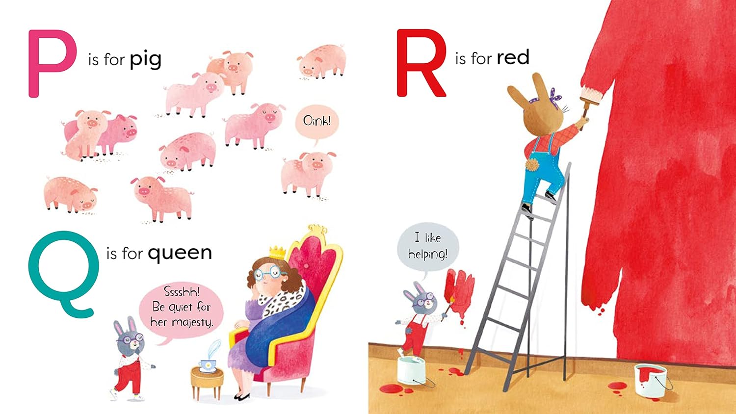 Le petit lapin nous présente chaque lettre de l'alphabet, illustrée de belles images loufoques qui permettent d'inventer de belles histoires. L'enfant découvre et apprend les lettres de l'alphabet tout en douceur, grâce à des mots rigolos et adaptés.
