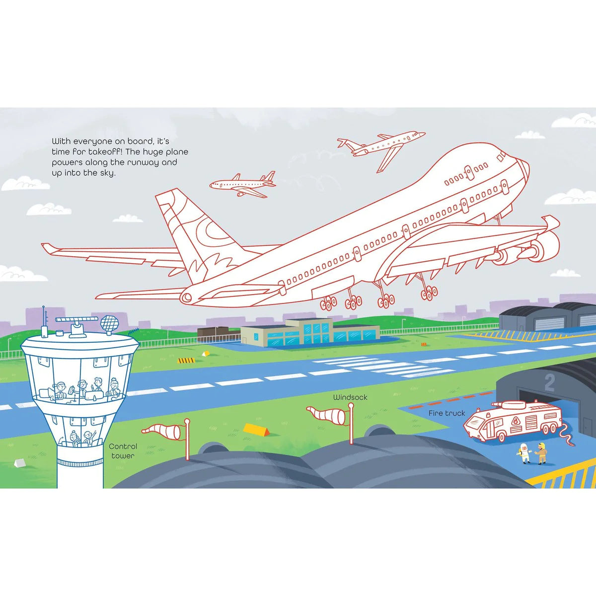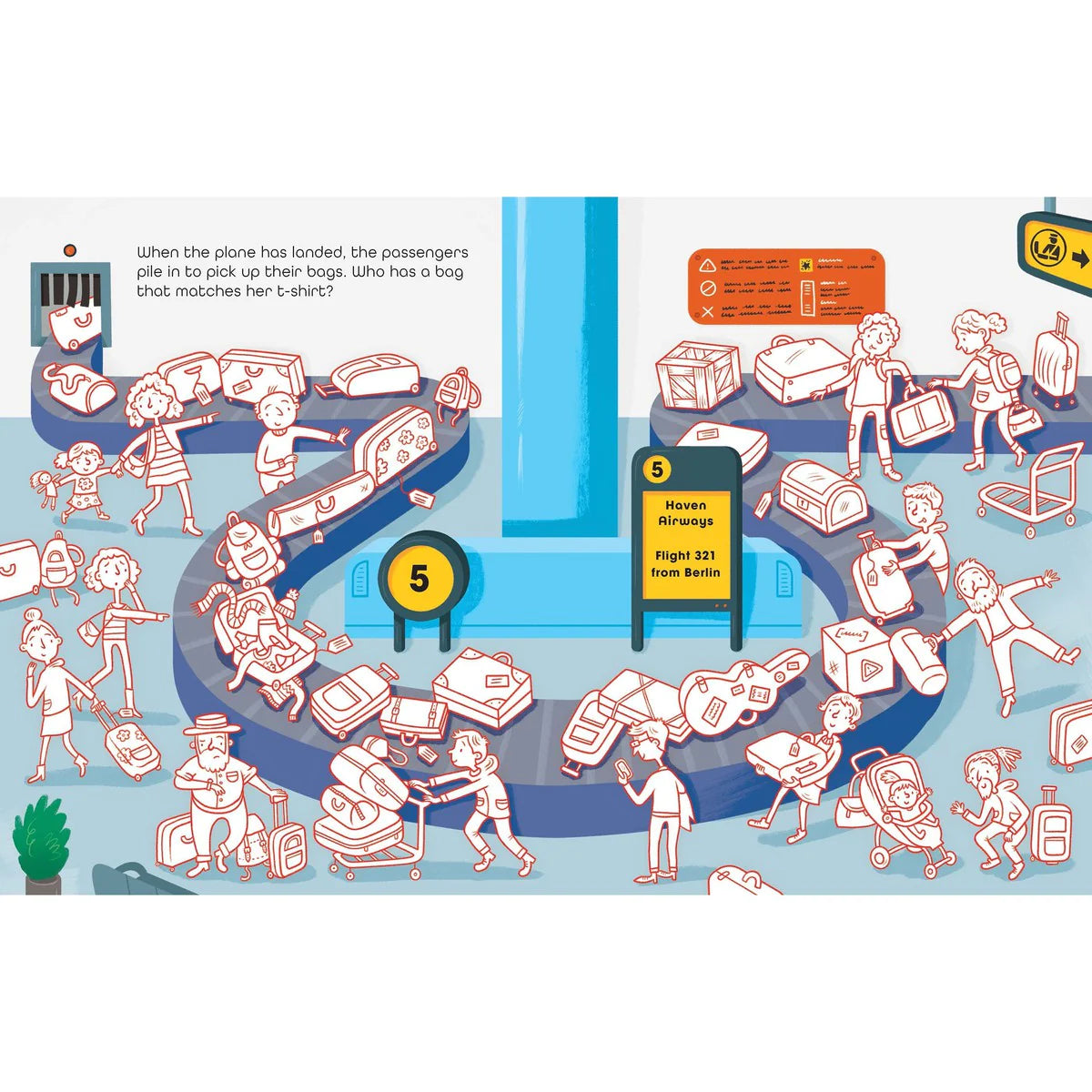 Take a trip through the airport and into the sky with this activity book for little children. Scenes include boarding a plane, take off, what happens during the flight and baggage reclaim. The backgrounds are already coloured in, so children can focus on the fun parts. Essential packing for a journey or holiday.