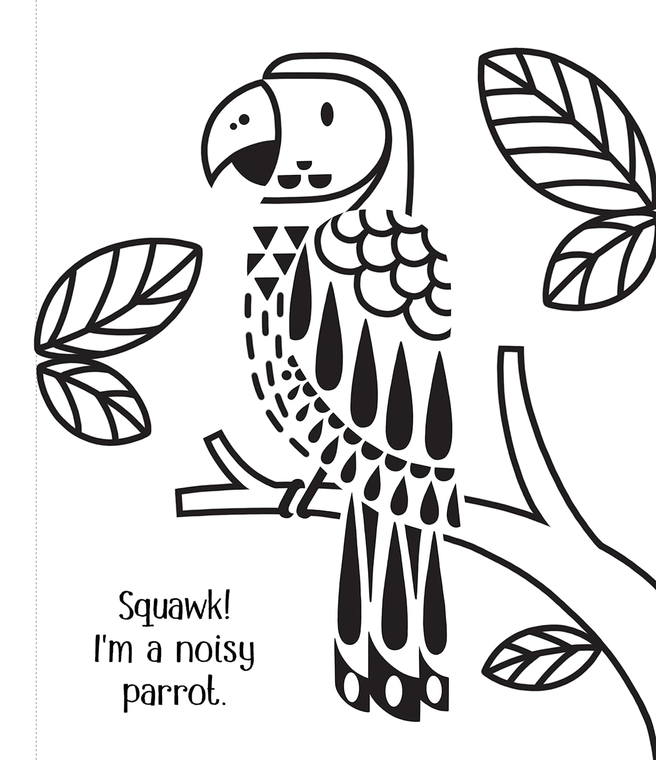 Filled with simple, stylish images of popular zoo animals including a monkey, giraffe and penguin. Just brush water over the bold black and white designs to watch them burst into vibrant colour.