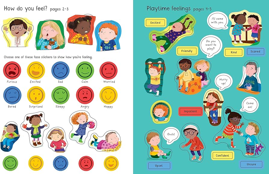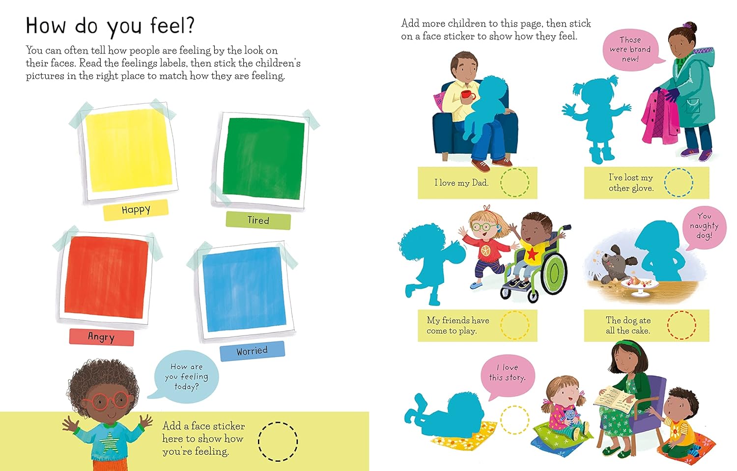 All sorts of emotions are explored in this delightfully illustrated sticker book, including feeling excited, worried, embarrassed or jealous at a party, sports day or on a day out. There's plenty of descriptive vocabulary for children to learn along the way, along with ideas about how to stay calm and manage difficult feelings.