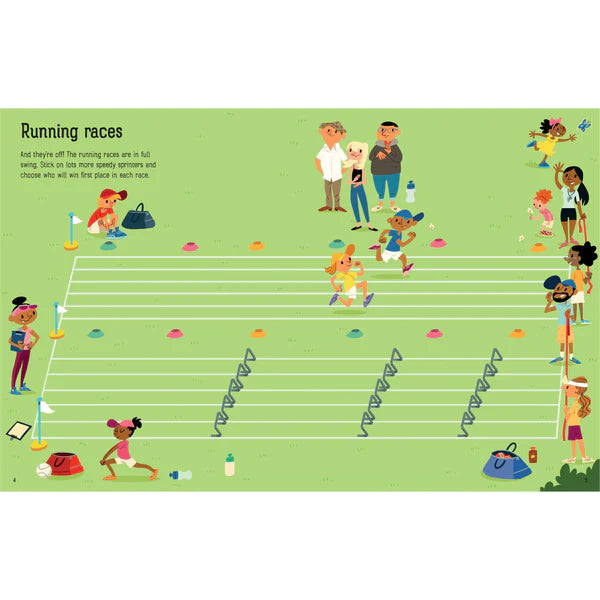Bring sports day to life in this exciting sticker book. Themes include an egg and spoon race, an obstacle course, mini athletics, running races, a tug-of-war and an awards ceremony at the end of the day. Children will have fun poring over the bright illustrations, selecting where to put the stickers and choosing the winning teams.
