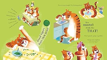 Katie Crocodile is having a tea party, when in storm three naughty tigers. "They gurgled and they guzzled and chortled till they spat! They drank straight from the milk jug... Then used it as a hat." It's time the tigers visited Miss Molly's School of Manners or they'll never be invited out to tea again... A perfect introduction to table manners with humour, rhyme and a lively cast of animal characters.