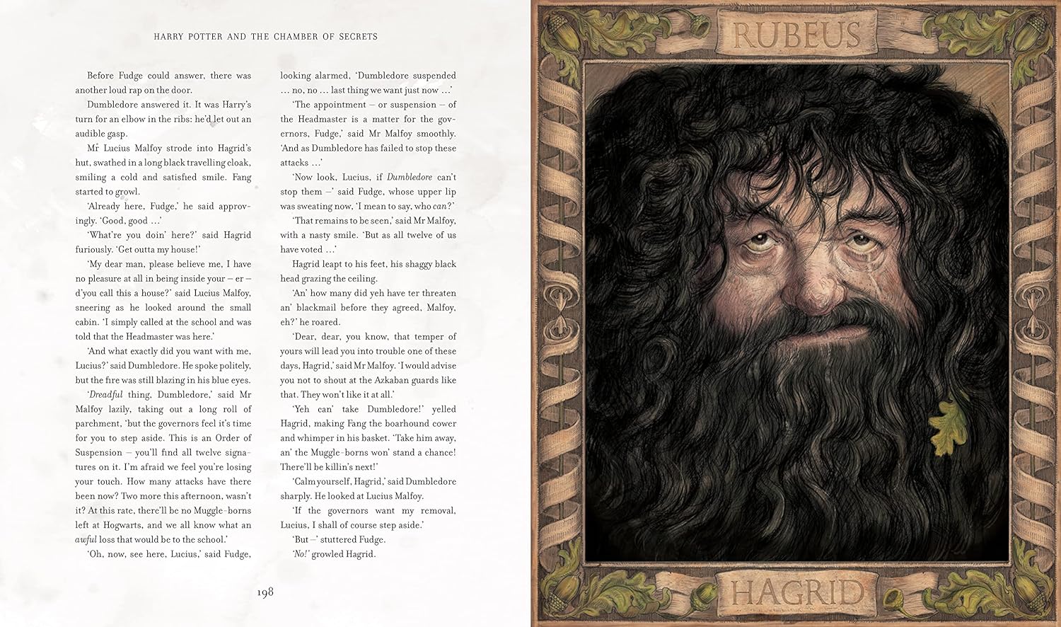 Prepare to be spellbound by Jim Kay's dazzling full-colour illustrations in this stunning new edition of J.K. Rowling's Harry Potter and the Chamber of Secrets. Breathtaking scenes, dark themes and unforgettable characters – including Dobby and Gilderoy Lockhart – await inside this fully illustrated edition. With paint, pencil and pixels, award-winning illustrator Jim Kay conjures the wizarding world as we have never seen it before. Fizzing with magic and brimming with humour, this inspired reimagining will captivate fans and new readers alike, as Harry and his friends, now in their second year at Hogwarts School of Witchcraft and Wizardry, seek out a legendary chamber and the deadly secret that lies at its heart …