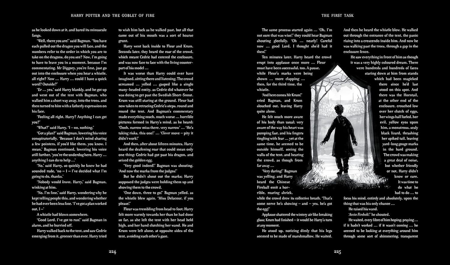 An extraordinary creative achievement by two extraordinary talents, Jim Kay’s inspired reimagining of J.K. Rowling’s classic series has captured a devoted following worldwide. This stunning new fully illustrated edition of Harry Potter and the Goblet of Fire brings more breathtaking scenes and unforgettable characters to life – including Cedric Diggory, Fleur Delacour and Mad-Eye Moody. With paint, pencil and pixels, Kay conjures the wizarding world as we have never seen it before. Fizzing with magic and brimming with humour, this full-colour edition will captivate fans and new readers alike as Harry, now in his fourth year at Hogwarts School of Witchcraft and Wizardry, finds himself competing in the legendary Triwizard Tournament and facing death-defying tasks, dragons and Dark wizards …