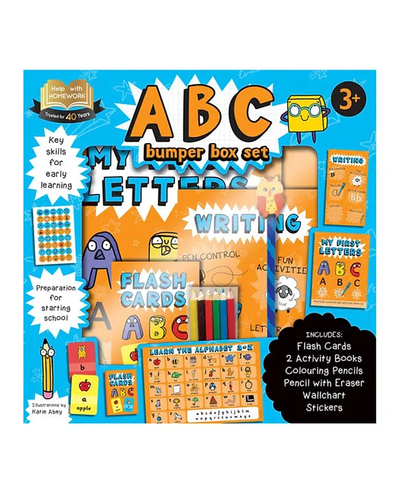 This brilliant box set contains everything you need to help your child get a head start with literacy. Two activity books, a wallchart, reqard stickers and a pack of flash cards have all been designed to help children enjoy learning to read and write letters. With colouring pencils and a pencil with an eraser, this bumper box set is ideal preparation for starting school.