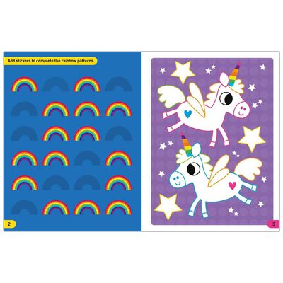This unicorn-themed sticker book is perfect for little ones who are just starting to sticker! It uses simple, shaped stickers and bright, bold illustrations to reinforce children’s shape awareness and hand-eye coordination. The colourful pages and clear instructions allow children to make beautiful works of art they can be proud of. A FUN MAGICAL CREATURE STICKER BOOK WITH SHAPED STICKERS THAT ARE PERFECT FOR LITTLE HANDS!