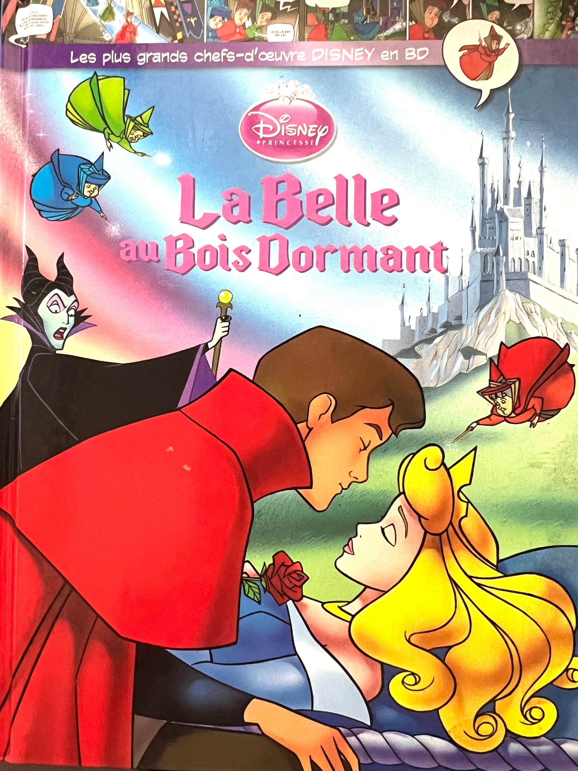 Une grande fete est organisee pour celebrer la naissance de la princesse Aurore fille du roi Stephane ses marraines les bonnes fees se penchent sur son berceau pour lui offrir leurs cadeaux flora lui offre la beaute .