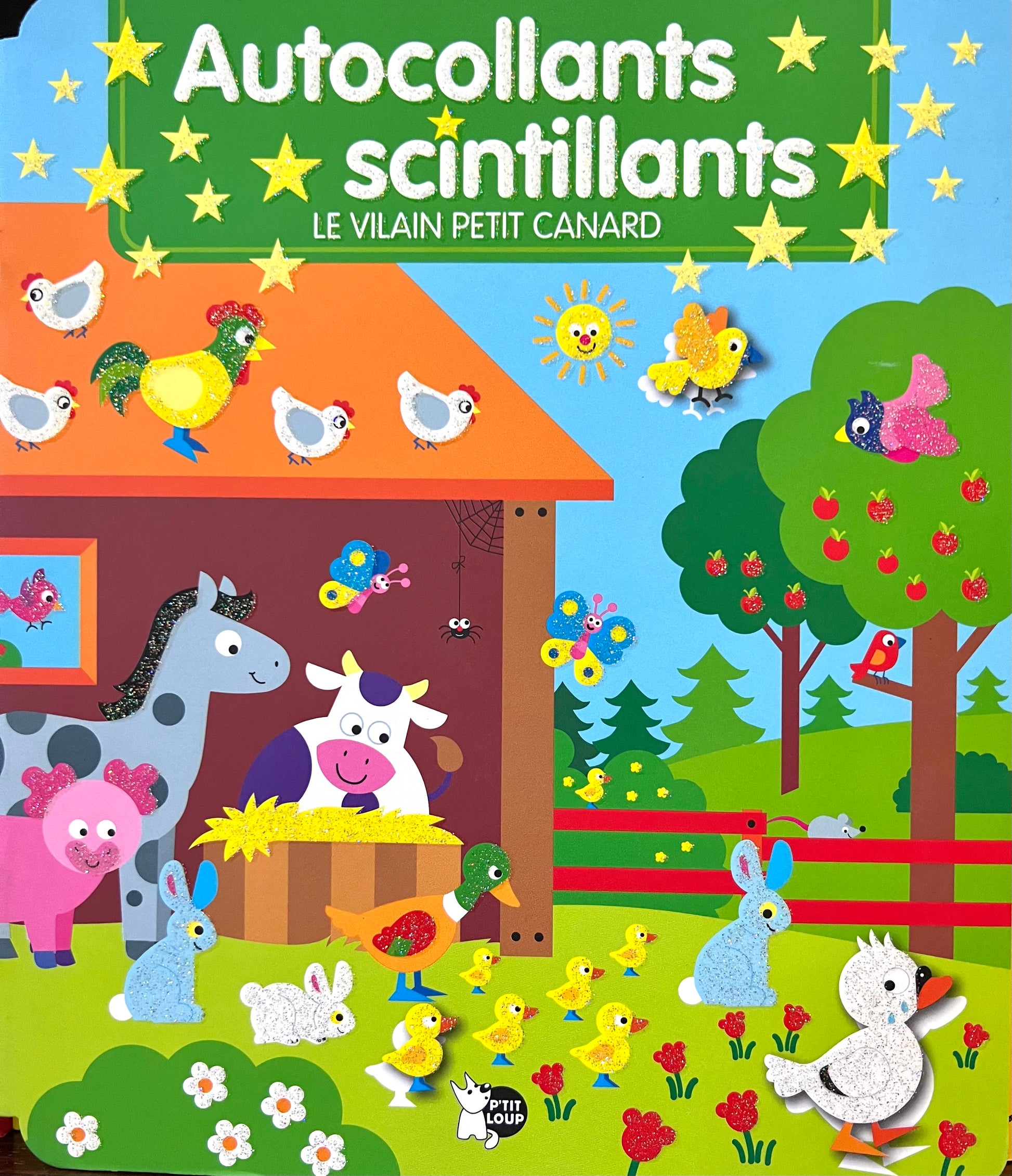 Les petits lecteurs s'amusent avec le célèbre conte Le Vilain Petit Canard. Les scènes sont incomplètes et l'enfant peut jouer à placer les autocollants à paillettes à l'endroit prévu.