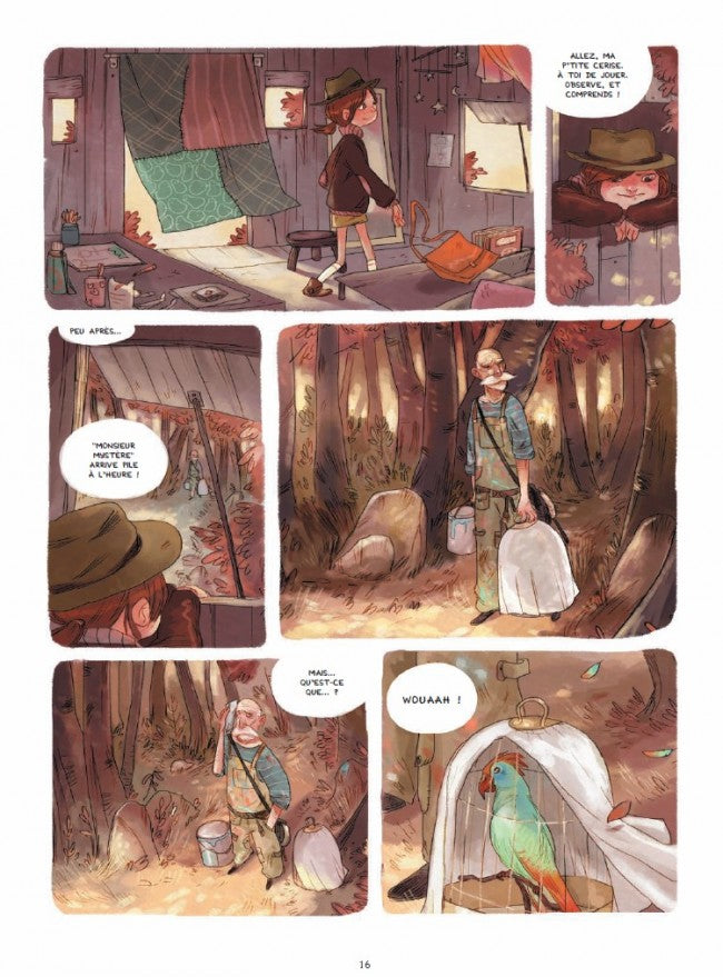 Cerise est une petite fille âgée de 11 ans qui vit seule avec sa mère. Elle rêve de devenir romancière. Son sujet favori : les gens, et plus particulièrement, les adultes. Elle adore les observer pour tenter de deviner leurs secrets. Comme Michel... Tous les dimanches, ce vieil homme s'engouffre dans la forêt avec de gros pots de peinture à la main. Qu'y fait-il donc toute la journée ? Et pourquoi a-t-il l'air si triste quand il rentre le soir ?Suivez Cerise au coeur de la forêt, pour sa première enquête.