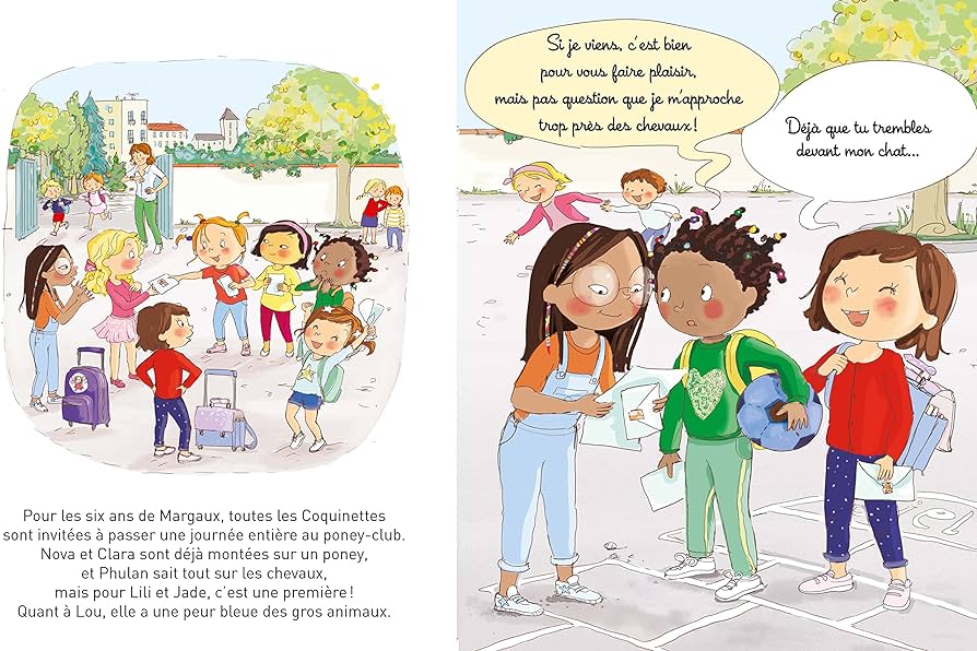 Découvrez une nouvelle histoire de la bande d'amies Les Coquinettes ! Aujourd'hui, les Coquinettes sont invitées au poney-club pour l'anniversaire de Margaux ! Elles rêvent de voir les poneys et les chevaux, toutes sont excitées. Mais une fois arrivées, quelle agitation au centre équestre ! Mirabelle va avoir son poulain et les choses ne se présentent pas très bien...