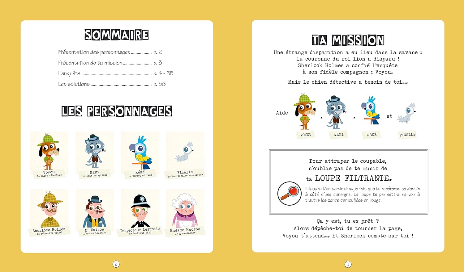 A l'aide de ta loupe filtrante, joue et résous des énigmes sans avoir besoin de savoir lire : cherche et trouve, labyrinthes, 7-différences, coloriages codés..25