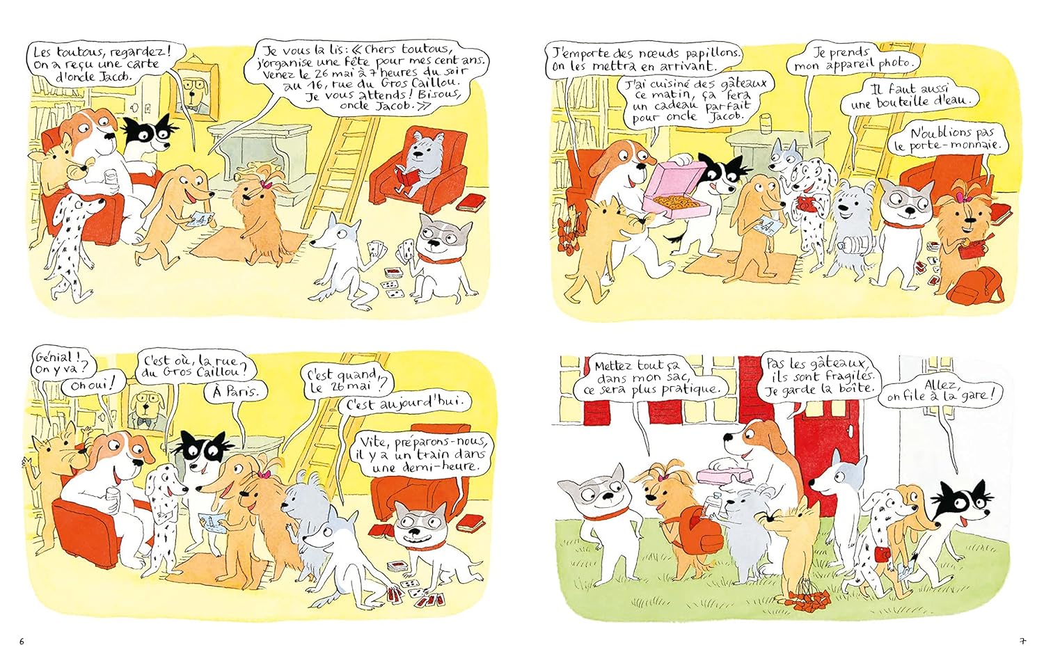 L'oncle Jacob fête ses 100 ans ce soir, à Paris, rue du Gros-Caillou ! Tous ses neveux toutous sont invités. Mais une fois à la gare, comment trouver la bonne adresse ? En cherchant partout, nos amis vont découvrir les merveilles de la capitale, à hauteur de toutous...