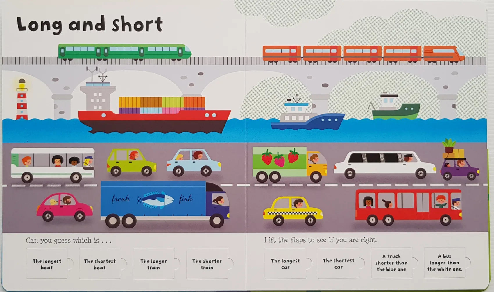With over 60 flaps to lift, this colourful book gently introduces important concepts such as size, comparisons and measuring. Young children can spot a slow tortoise and a fast leopard, compare the size of two boats, see which child is the tallest, and much more. A fun introduction to a key early learning topic.