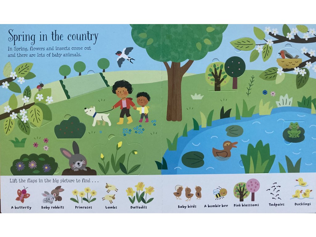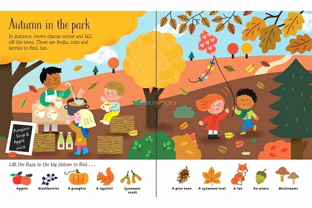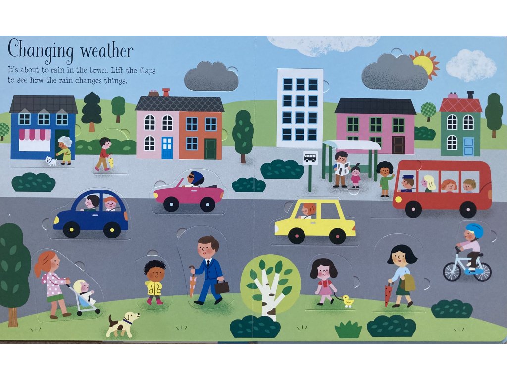 Ce charmant livre aidera les enfants à reconnaître et à parler des saisons et de la météo. Il y a des scènes de printemps, d'été, d'automne et d'hiver avec beaucoup de choses à repérer et plus de 80 rabats à soulever, ainsi que des pages sur les changements saisonniers et quoi porter lorsqu'il fait beau, qu'il pleut ou qu'il neige. Un livre délicieux à partager et à développer les compétences linguistiques.