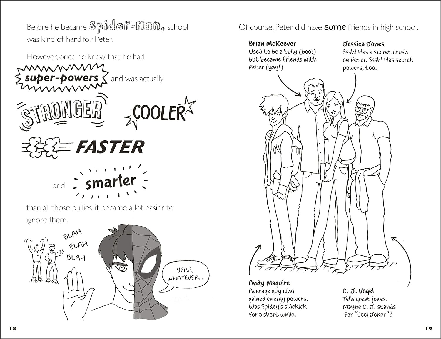 Featuring doodle-style illustrations, stunning art from the Spider-Man style guides, and lively, humorous text, Marvel Spider-Man: Swing into Action! will enthrall even the most reluctant young reader. Discover how Spidey got his powers, why the Green Goblin is one of his most terrifying enemies, and which other Web-Warriors help Spidey out when danger threatens the whole Marvel Spiderverse.
