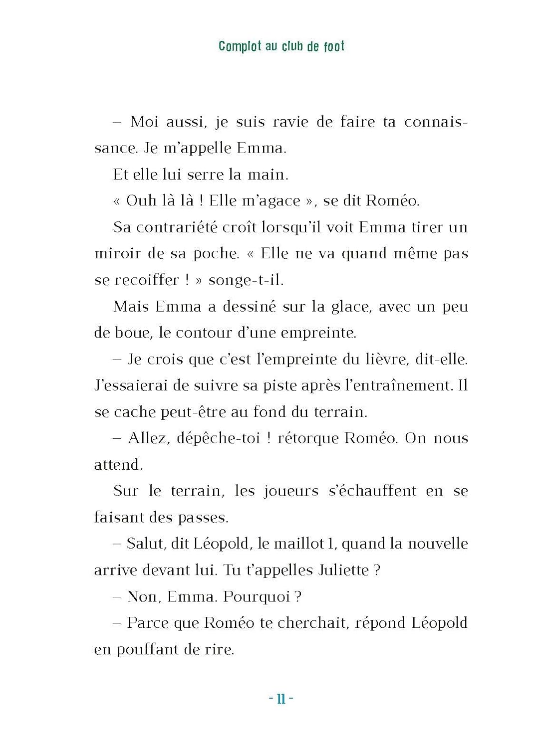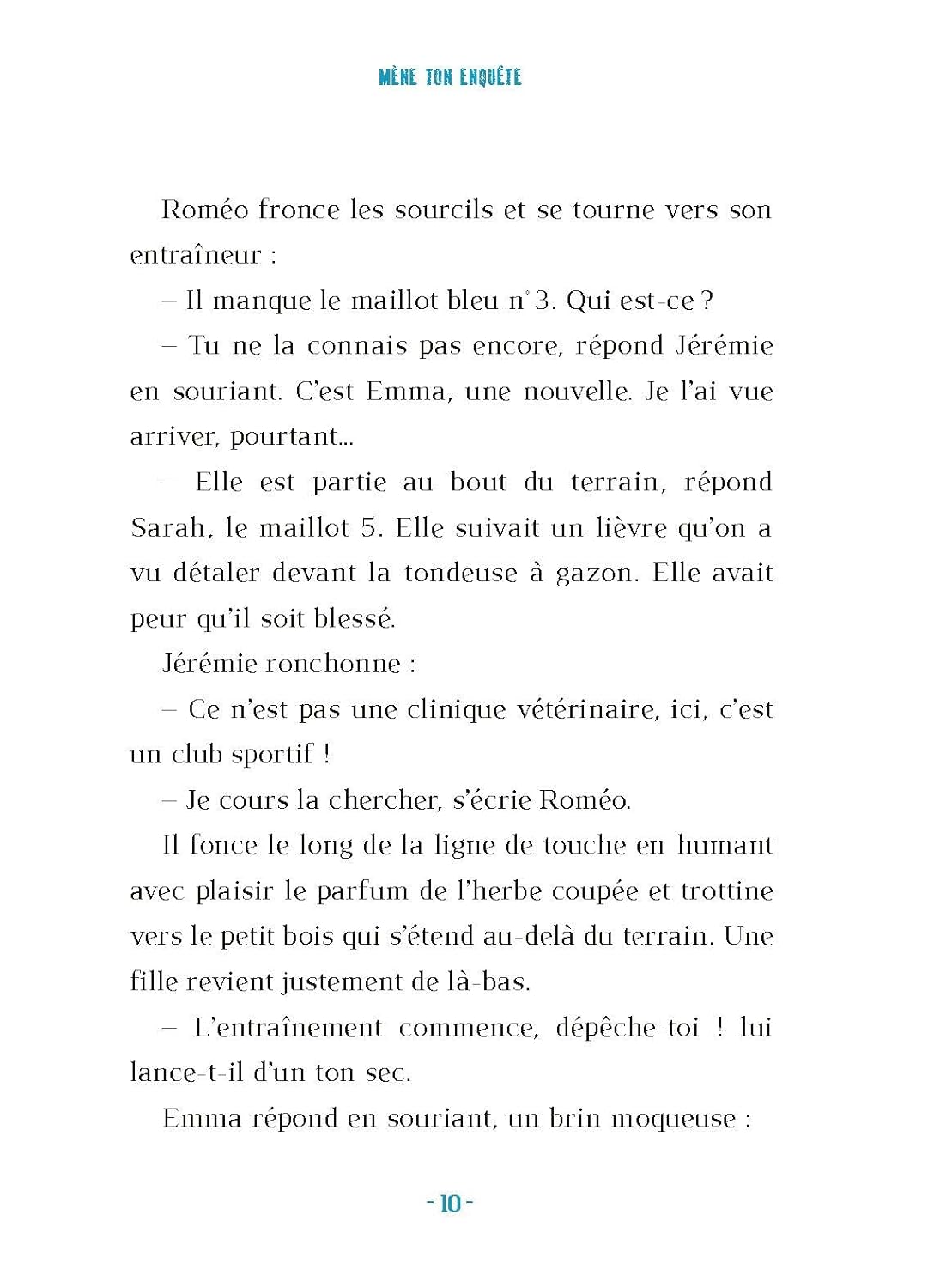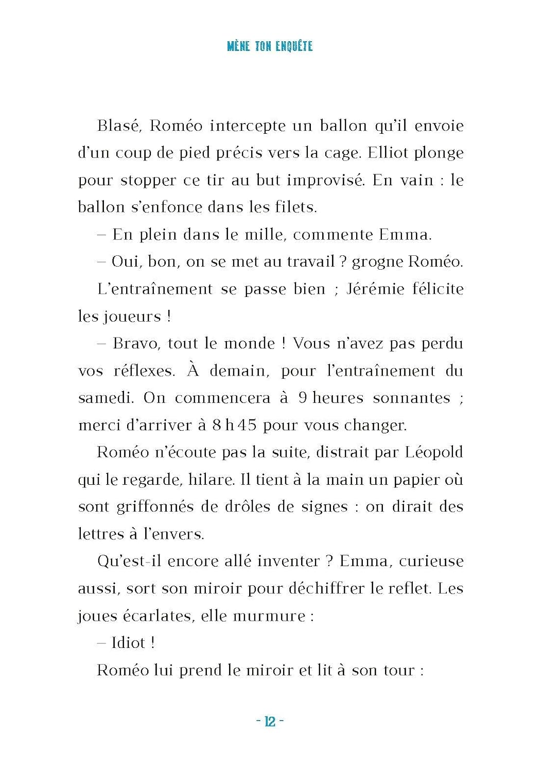 Complot au club de foot . Une enquête palpitante dans un club de football . Alors qu'un match amical se prépare, Emma et Roméo découvrent de mystérieux messages leur laissant penser qu'une tricherie va avoir lieu pendant la compétition.. Aidés par Ploum, un lièvre très malicieux, nos jeunes héros décident d'enquêter pour déjouer ce complot !. Toi aussi, mène l'enquête avec Emma, Roméo et Ploum ! . Déchiffre les messages codés, trouve les indices dans les illustrations et résous les énigmes pour sauver la beauté du sport..