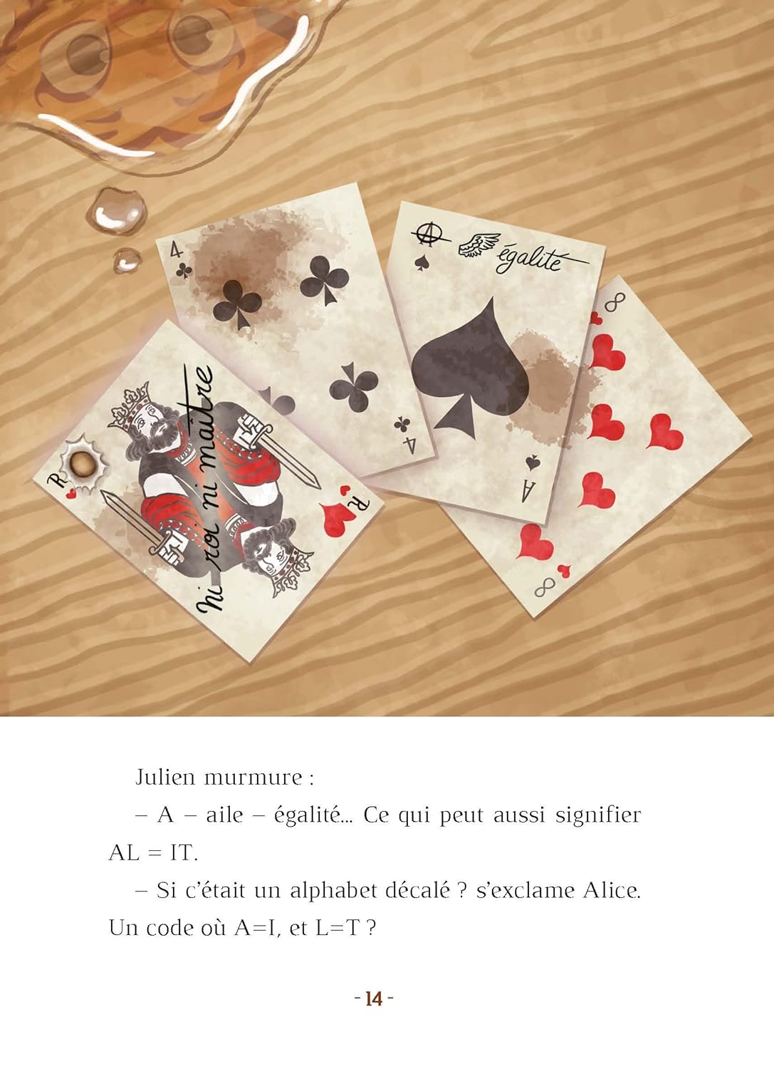 Menace sur la tour Eiffel . Une enquête palpitante dans le Paris de la Belle Epoque ! . Juin 1889 : alors que le Tout-Paris parle de l'Exposition universelle qui est en cours, Alice et Julien tombent sur un terrible complot... Des rebelles anarchistes sont décidés à faire exploser la tour Eiffel. Les deux amis doivent à tout prix empêcher cette catastrophe !. Aidés par Kala, un intrépide bébé tigre, nos jeunes héros devront s'armer de courage pour déjouer l'horrible attentat.... Toi aussi, mène l'enquête avec Alice, Julien et Kala ! . Déchiffre les messages codés, trouve les indices dans les illustrations et résous les énigmes pour sauver le joyau de l'Exposition universelle. .