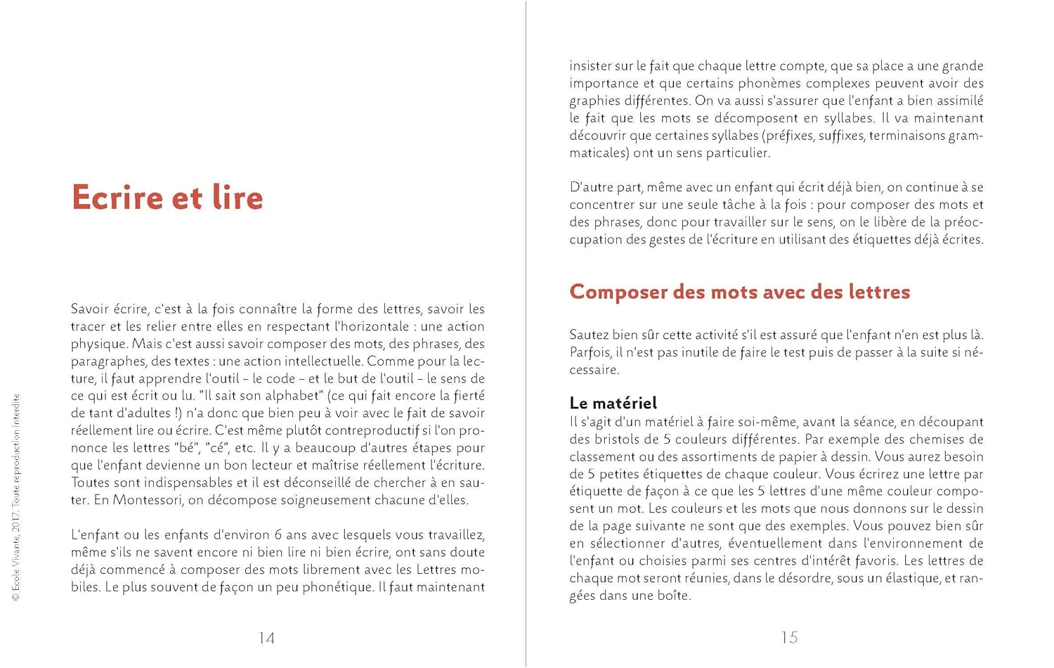 Ce livre détaille le travail montessorien en grammaire, orthographe et conjugaison, mais aussi en expression écrite et orale. Il couvre l'équivalent du programme de l'Education nationale jusqu'à la cinquième incluse.