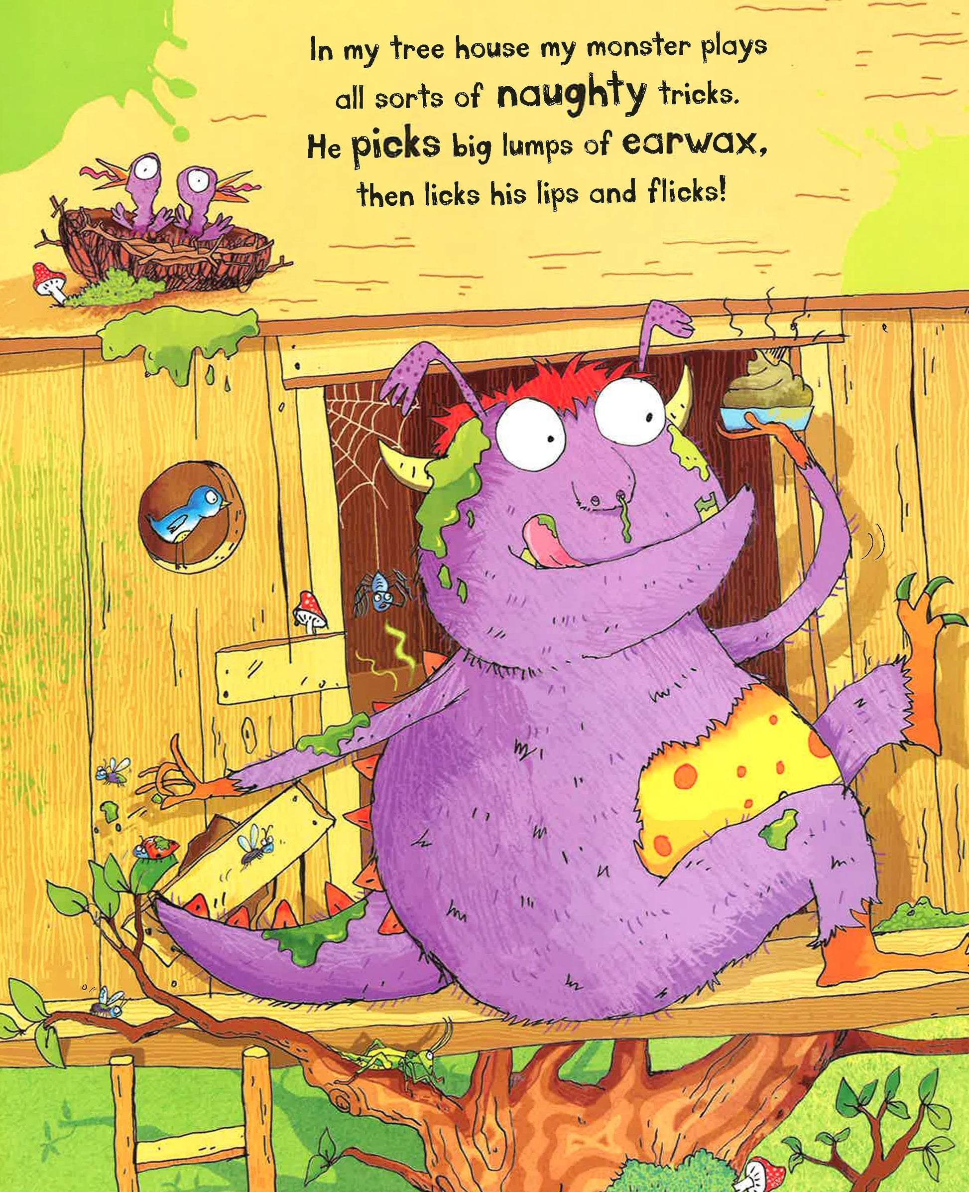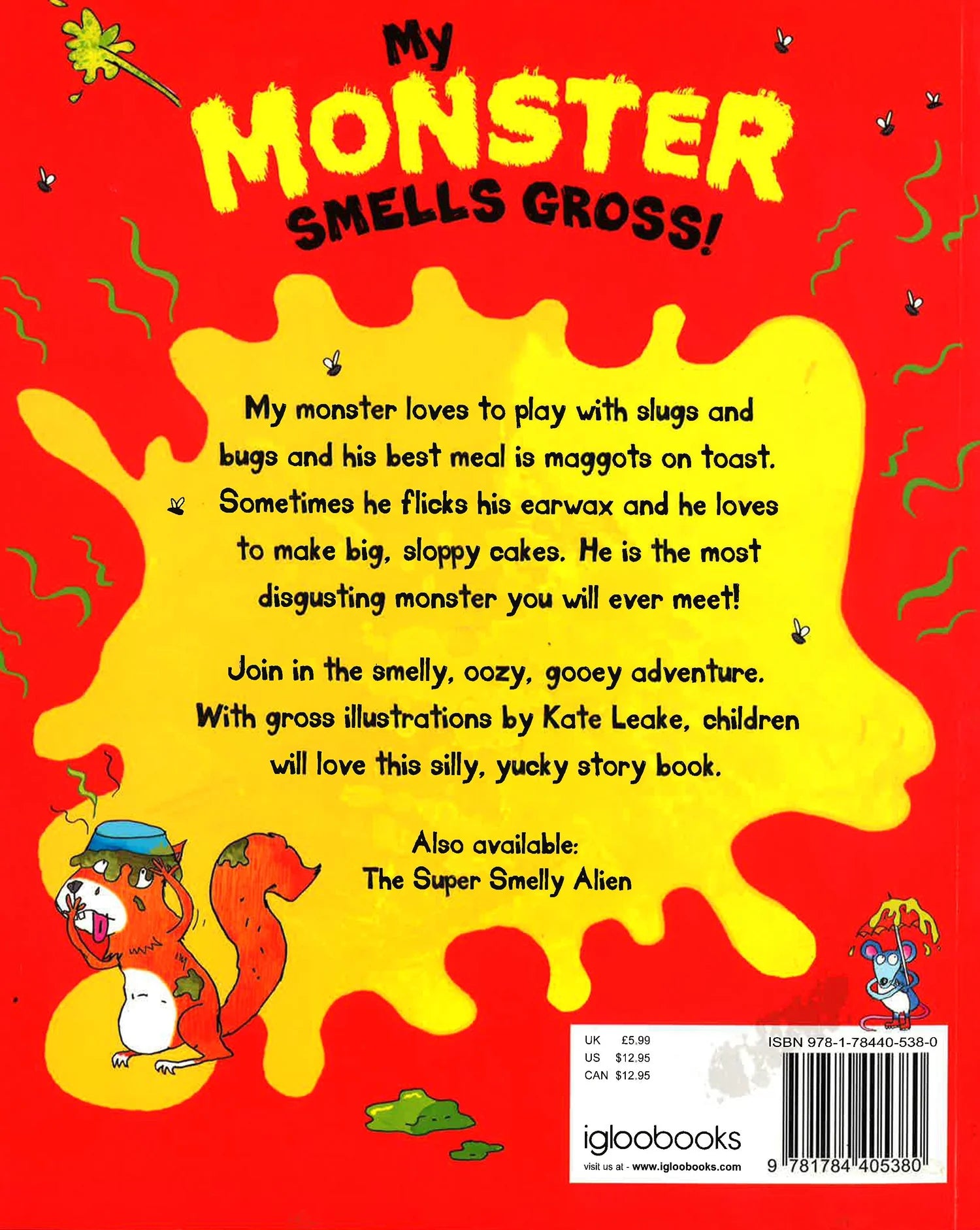 My monster loves to play with slugs and bugs and his best meal is maggots on toast. Sometimes he flicks his earwax and he loves to make big, sloppy cakes. He is the most digusting monster you will ever meet! Join in the smelly, oozy, gooey adventure. With gross illustrations by Kate Leake, children will love this silly, yucky story book.