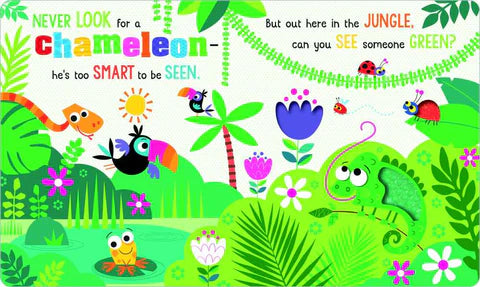 Never look for a chameleon . . . unless it's in this book! Children will love looking for the color-changing chameleon on each busy page. There are die-cut holes to peek through and amazing silicone touches, creating a tactile reading experience. With fun, rhyming text and awesome illustrations from Stuart Lynch, this book is sure to be a hit!