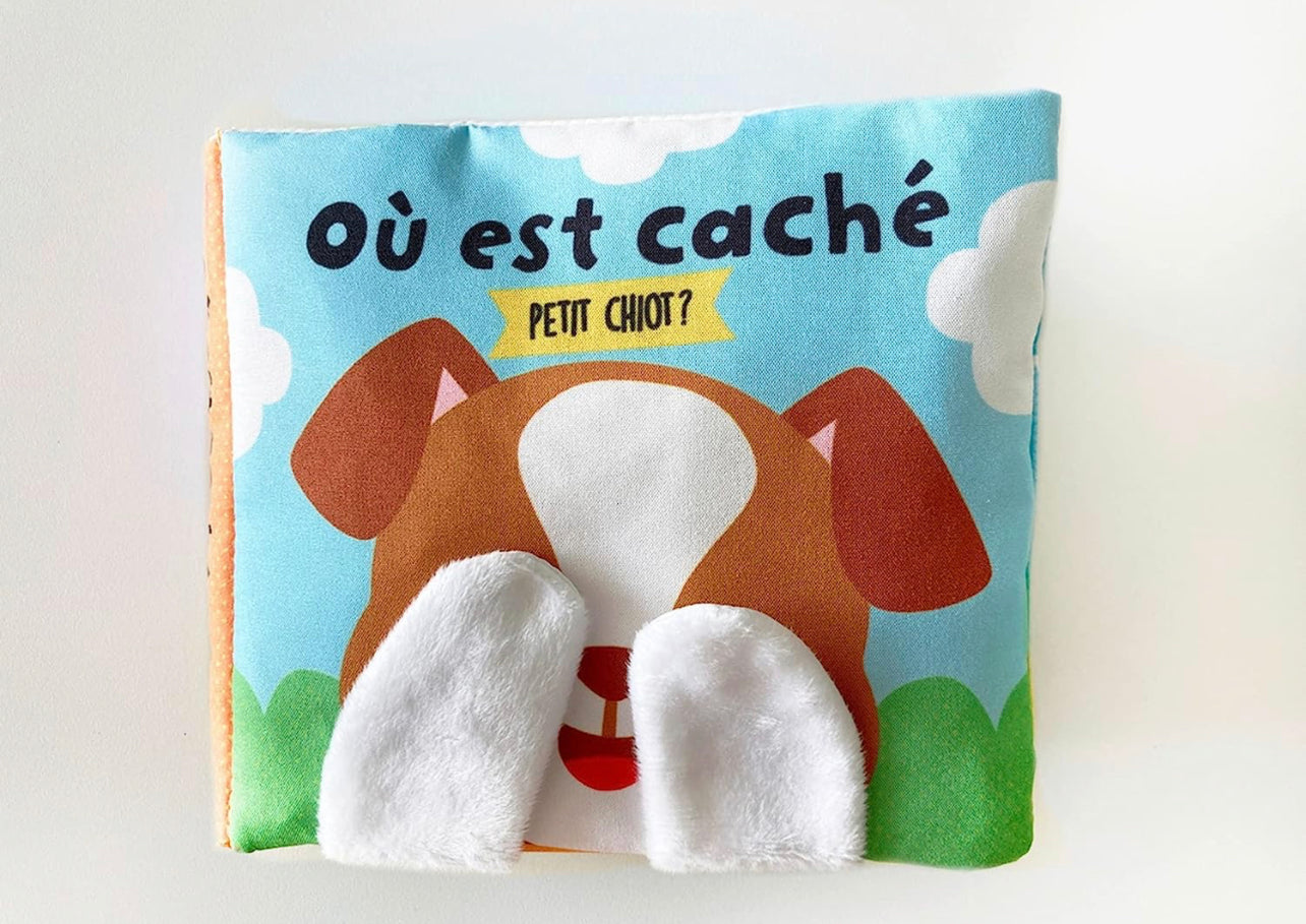 un coucou-cache en tissu Ou est cache petit chiot?