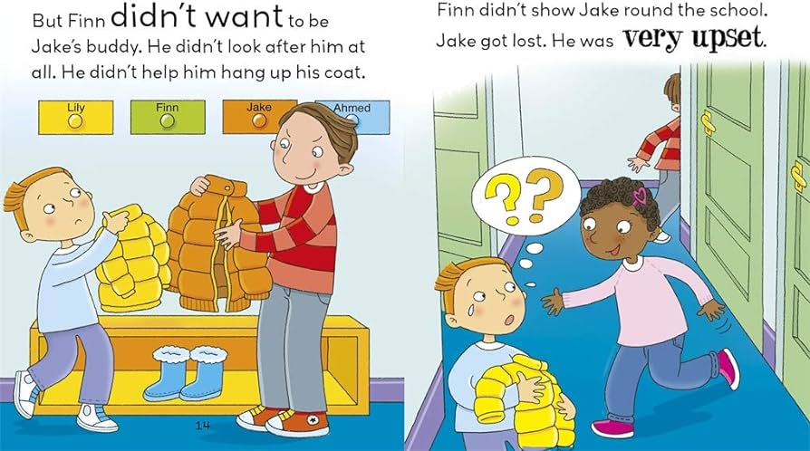 Finn struggles with caring for other children at school. He can be selfish and he often plays too aggressively. When the other children complain, Mr Hare has an idea. He chooses Finn as the buddy for Jake, a new boy at school. However, Finn does not help Jake, and the other children become really upset with Finn for being so unkind. Finn is soon left out by the other children and is left feeling miserable and lonely. Can Mr Hare help Finn find a way to make it all better?