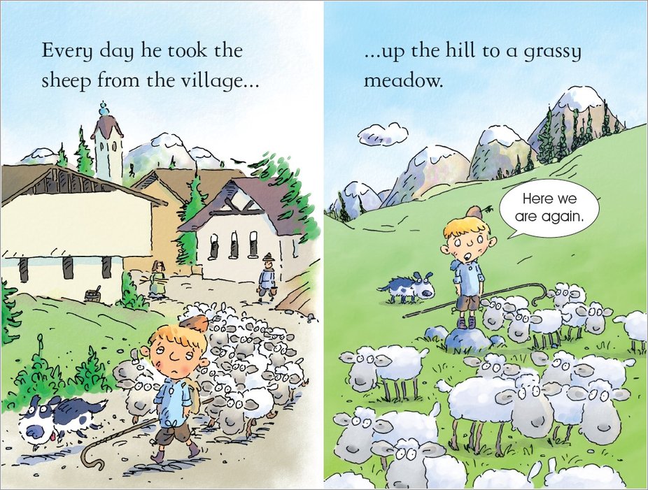 Every day, Sam takes the same old sheep up the same old mountain. What can he do to make life a little more exciting? Fin out in this livery retelling of the classic story by Aesop.