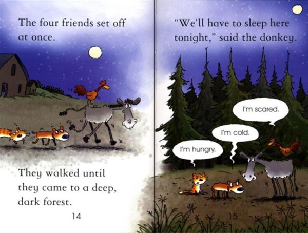 A retelling of the Grimm tale in which an old donkey, dog, cat, and rooster, no longer wanted by their masters, set out for Bremen to become musicians.