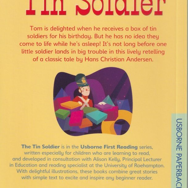 About the Book: UFR Level-4 The Tin Soldier A charming retelling of the timeless classic by Hans Christian Andersen, retold with simple text for children just beginning to read. Tom is delighted when he receives a box of tin soldiers for his birthday. But he has no idea they come to life while hes asleep! Attractive hardback book with ribbon marker. Developed in conjunction with reading experts from Roehampton University.