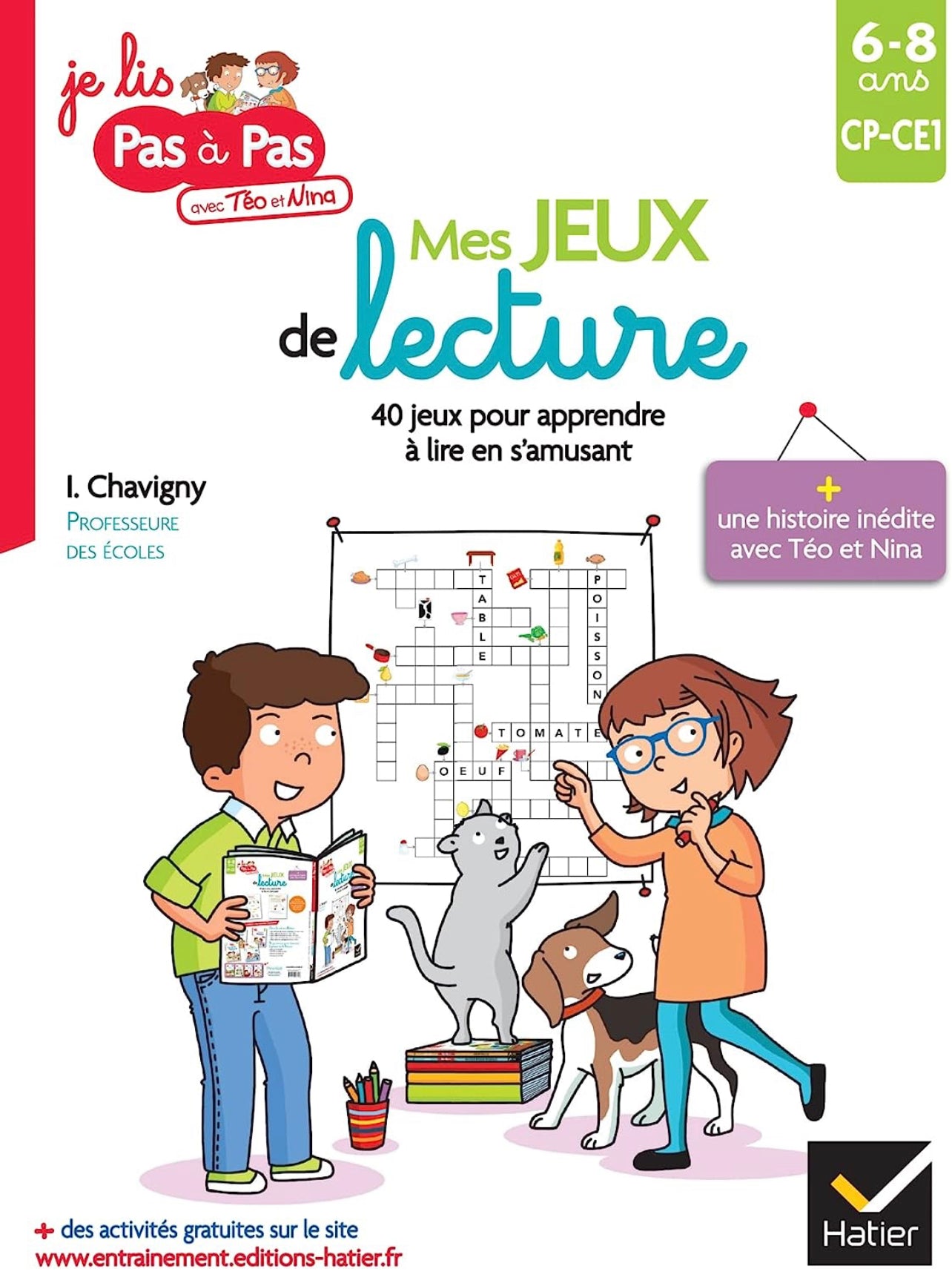 Un cahier de jeux de lecture pour s'entrainer à lire tout en s'amusant. Fin de CP, CE1. En complément de la Méthode de lecture Pas à Pas. Plus de 40 jeux pour mieux reconnaître les lettres, lire des syllabes et des mots. Avec une histoire inédite de Téo et Nina.