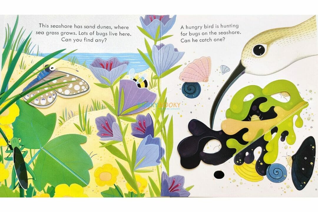 Peep under seaweed and waves and into rock pools to discover all the delights of the seashore in this interactive little book. What does a limpet look like in its shell? What's inside a pelican's bulging beak? What is a sea otter cuddling as it floats on its back? From bugs in the sand dunes to turtles hatching on a moonlit beach, this book explores coastlines from all around the world.