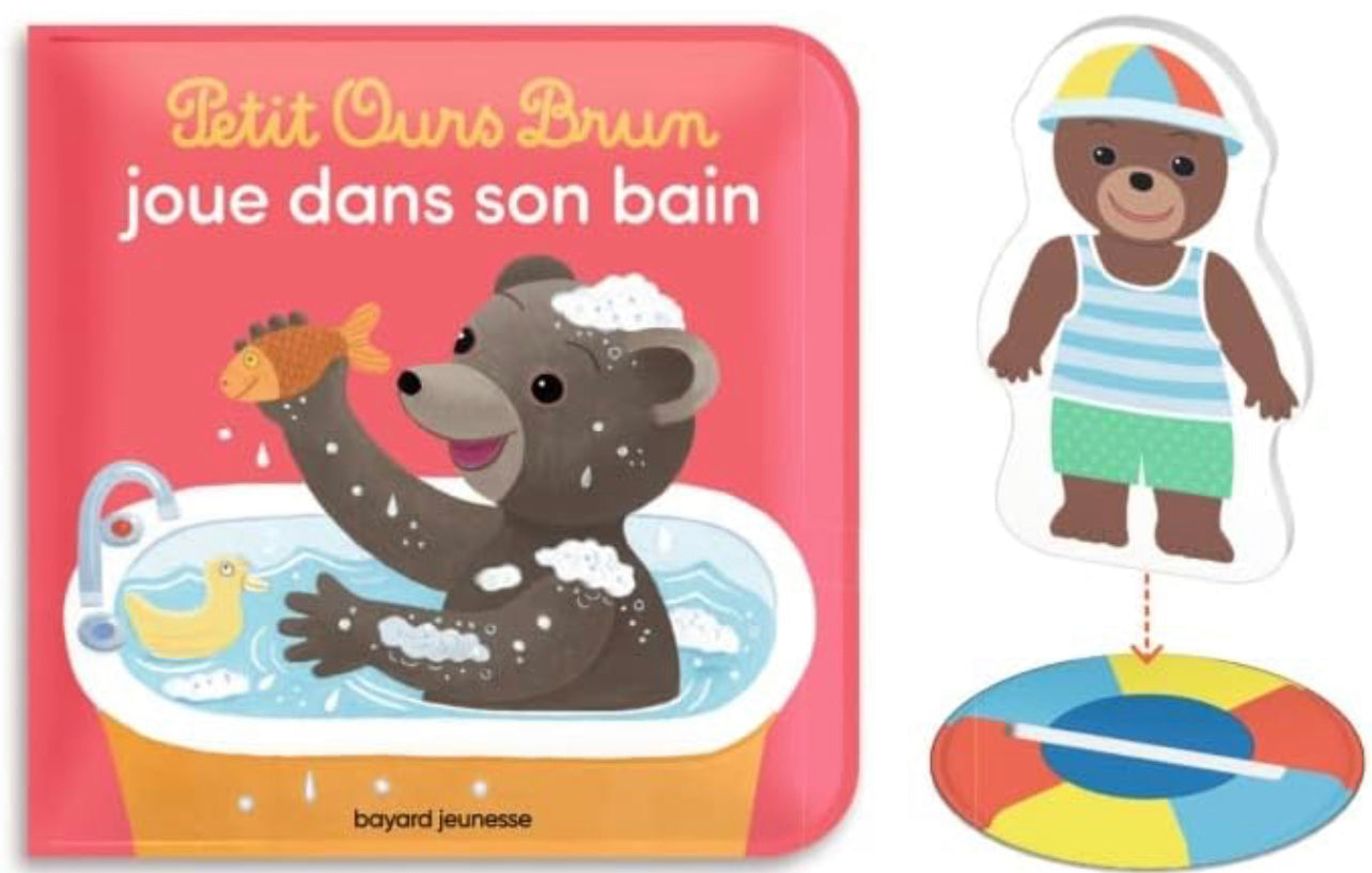 Avec le livre, un jouet flottant en forme de Petit Ours Brun.