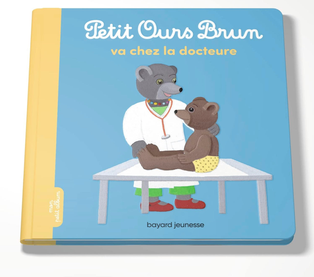 Petit Ours Brun va chez la docteure. Il se déshabille comme un grand et laisse la docteure l’examiner sans pleurer… Bravo, Petit Ours !