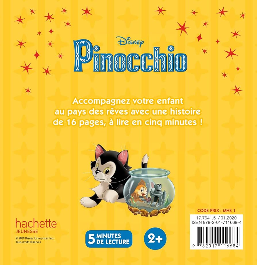 Accompagnez chaque soir votre enfant au pays des rêves avec la collection " Mon histoire du soir " ! Dans cet ouvrage de 16 pages richement illustré, au texte court, facile et rapide à lire, découvrez l'histoire du grand classique Pinocchio. Un texte adapté aux plus petits pour un temps de lecture de 5 minutes. Dès 2 ans. Histoire : Geppetto est un petit artisan qui rêve d'avoir un fils. Un soir il fabrique une marionnette en bois qu'il baptise Pinocchio. A la nuit tombée, la Fée bleue donne vie au pantin. Pinocchio arrivera-t-il à devenir un vrai petit garçon ?