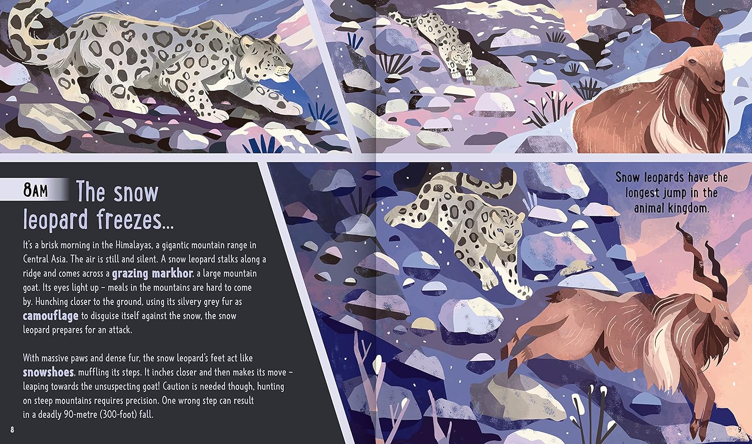 Set over a 24-hour period, meet sparring snow leopards, sprinting cheetahs, and slumbering jaguars in this kids’ nonfiction book about the biggest cats on Earth.