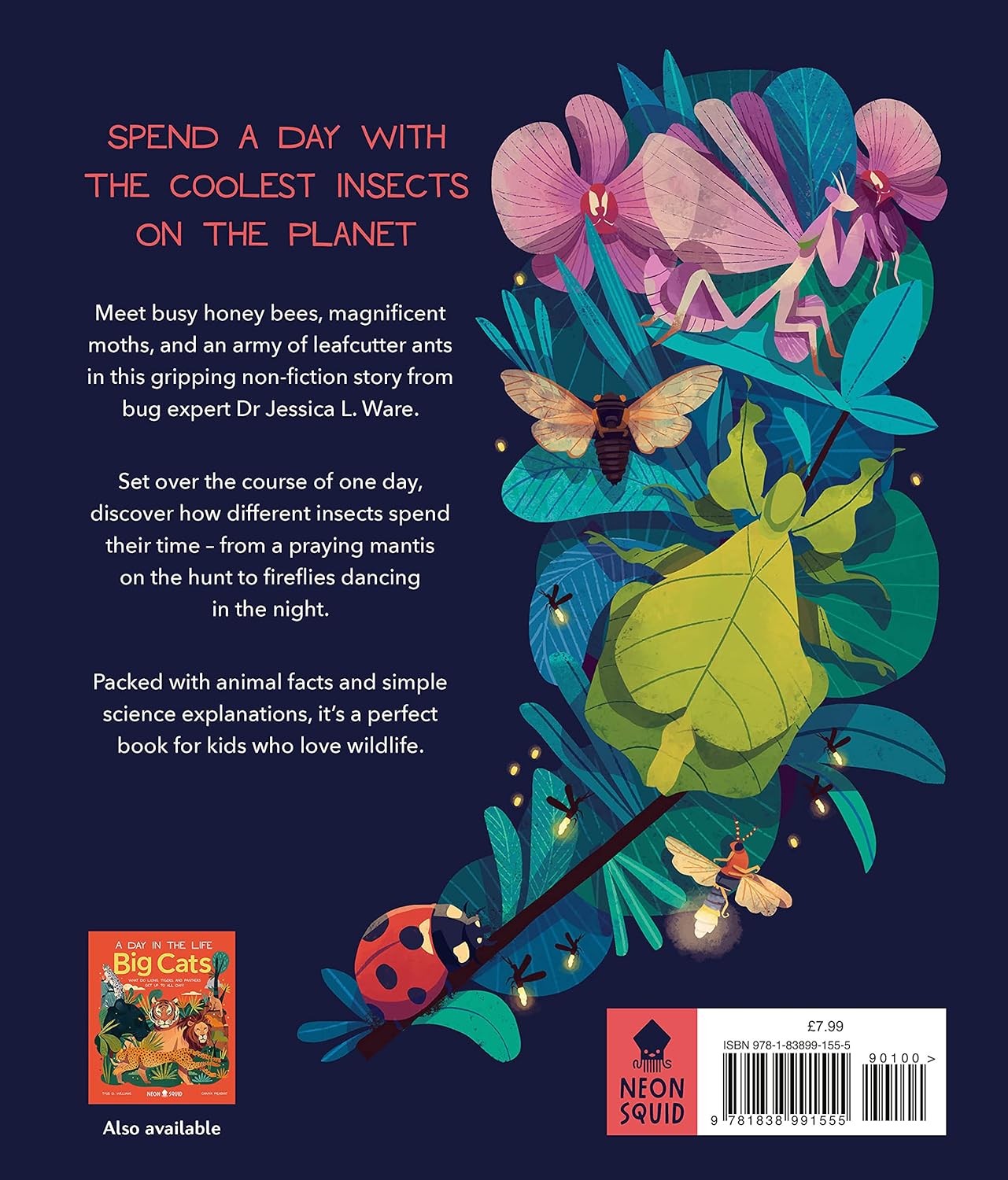 Set over a 24-hour period, meet busy honeybees, transforming caterpillars, and an army of leafcutter ants in this kids’ non-fiction book about the coolest insects on Earth.