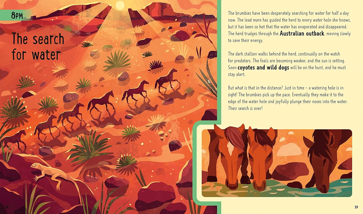 Set over a 24-hour period, meet fighting stallions, cute foals, and nosy donkeys in this kids’ non-fiction book about the coolest wild horses in the world.