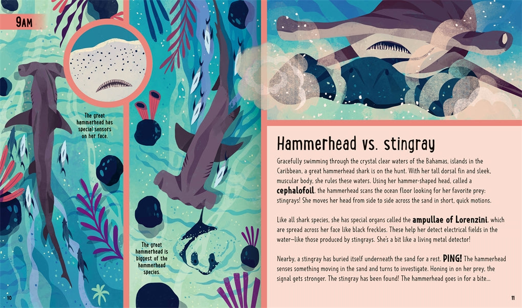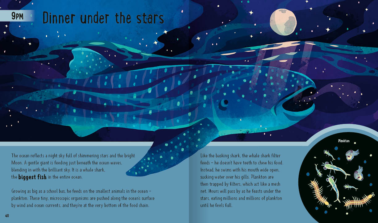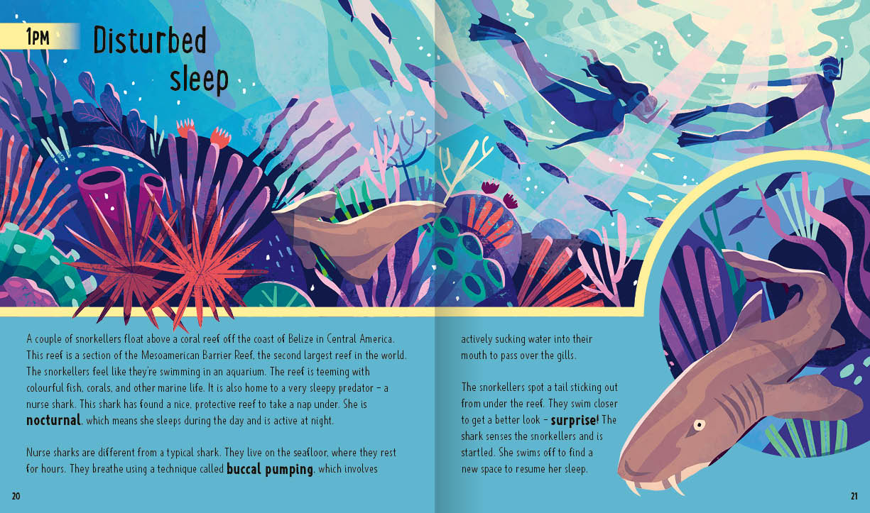 Set over a 24-hour period, meet deadly tiger sharks, baby lemon sharks, and gigantic basking sharks in this kids’ non-fiction book about the coolest predators in the ocean.