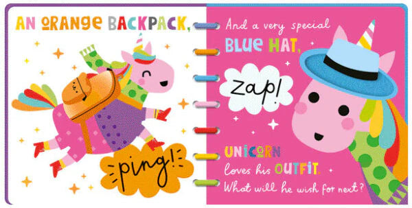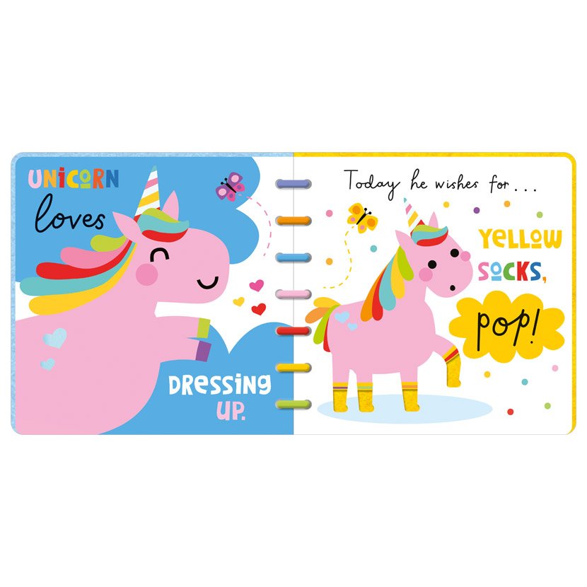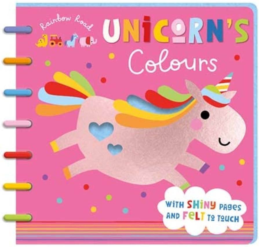 Join Unicorn in this sweet book, all about first colours! The sweet story and bright illustrations will engage little ones. With colourful felt between each die-cut card page and rainbow-coloured plastic loops holding the pages together, this tactile and durable book is great for young children to explore with their hands. Plastic loops on spine. Felt sandwiched between every page. Teaches children colour words. Bright illustrations and simple text.