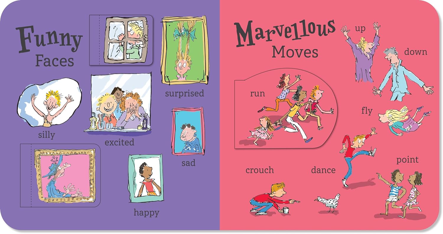 Chiddlers will have splendiferous fun learning their first words with the help of this sturdy, colourful board book. Look under the flaps to find your favourite characters and some extra gobblefunking words invented by Roald Dahl himself!